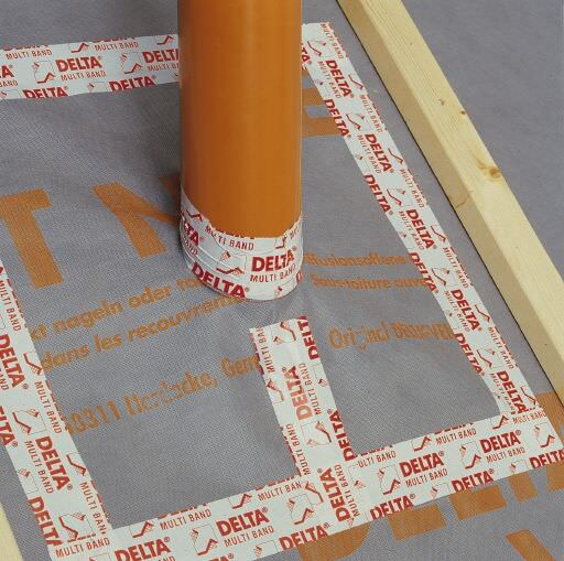 Лента DELTA®-MULTI-BAND M100 (ширина 100 мм.) хорошо подходит для создания воздухо- и паронепроницаемого примыкания к оконным и дверным проёмам.
